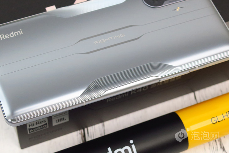 Redmi K40游戲增強版的機身背部還是非常具有辨識度的,在手機背殼上采用了機甲浮雕對撞線條的設計,體現了其電競的一面,但又不會過于夸張,作為日常手機使用也完全沒有問題。
