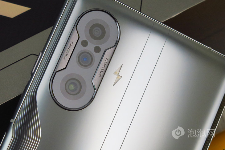 在細節設計方面,Redmi K40游戲增強版采用了閃電型的閃光燈,看上去還是非常炫酷的。