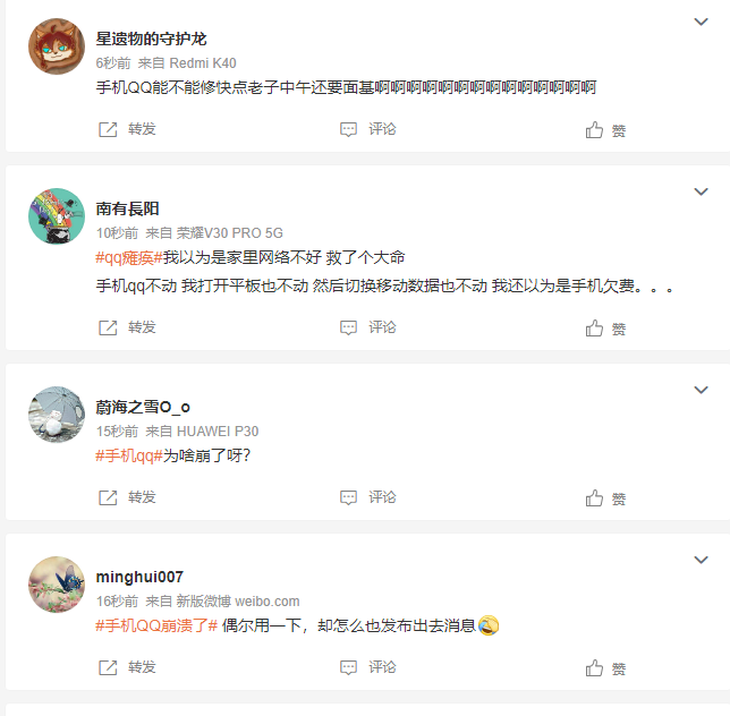 手機QQ服務疑似故障,消息無法發出及接收