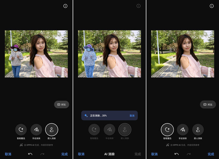 此外,AI閉眼修復、AI超清合影、AI消除、AI摳圖等等,對于拍攝人像也是相當實用的AI功能。