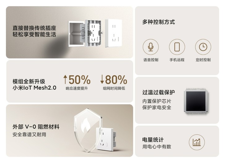 59元!新款小米智能墻壁插座發布,搭載Mesh 2.0技術