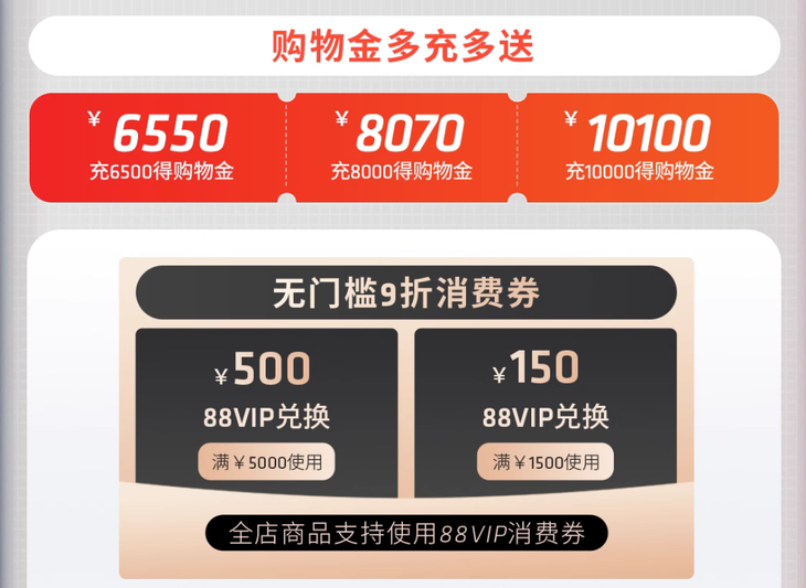 首先還是來介紹一下AMD天貓官方旗艦店的會員福利,強烈建議大家先加入AMD會員俱樂部,這樣購物后獲取的積分可以兌換好禮,首次入會還有無門檻券,專屬客服顧問服務,還有不定時0.01元秒殺AMD周邊好禮。而在雙十一大促期間,AMD天貓官方旗艦店準備了購物金供大家充值,多充多送。淘寶88VIP會員可以領取無門檻9折消費券,滿5000立減500元以及1500-150元。需要大家注意的是,這些產品的到手價格請以實際頁面為準,很多福利活動限時限量,不清楚建議咨詢下在線客服,下面來介紹活動商品。