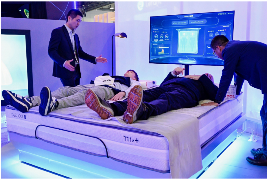 陳文澤詳解了這些“看不見的創(chuàng)新”,核心傳感器已率先獲得國家二類醫(yī)療器械認(rèn)證,精度媲美專業(yè)醫(yī)療設(shè)備;驅(qū)動智能床調(diào)節(jié)的“柔性調(diào)節(jié)柱”數(shù)量高達(dá)數(shù)百個,實現(xiàn)毫米級精準(zhǔn)支撐;主控盒運行噪音被控制在26分貝以下,達(dá)到靜音房標(biāo)準(zhǔn)。