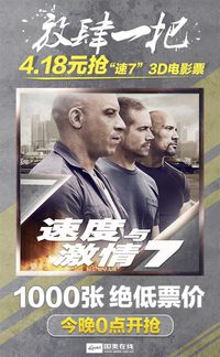 ? ?4.18元能去電影院看一場好萊塢大片?是的,這不是愚人節(jié)的玩笑,作為電影《速度與激情7》的中國唯一電商平臺(tái),國美在線將在4月1日0點(diǎn)開啟《速度與激情7》3D影票4.18元預(yù)售活動(dòng)。屆時(shí),大家可以在國美在線的PC端和移動(dòng)端同時(shí)搶購,數(shù)量有限,還等什么?!? ? 國美在線 萬品開門紅 三天促銷 >>點(diǎn)擊進(jìn)入? ? 《速度與激情》系列自2001年誕生以來,在全球累計(jì)票房高達(dá)23億美金。超炫的車技,