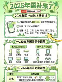 在12月31日,國家發展改革委、財政部發布了《關于2026年實施大規模設備更新和消費品以舊換新政策的通知》,明確了各品類補貼的覆蓋范圍和補貼力度。屆時只要打開京東APP搜索"國補606"即可領取2026年各個地區的國補資格。